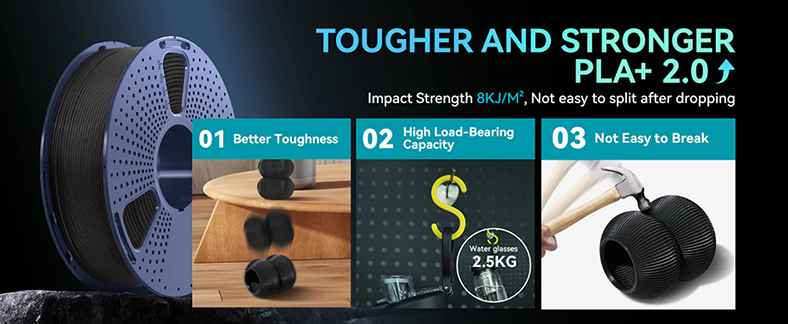 Pevnost PLA +2.0 se blíží vlastnostem ABS. Filament je odolný proti praskání a mechanickému namáhání, takže se hodí na funkční díly, kryty, nástroje nebo modely, které musí něco vydržet.
