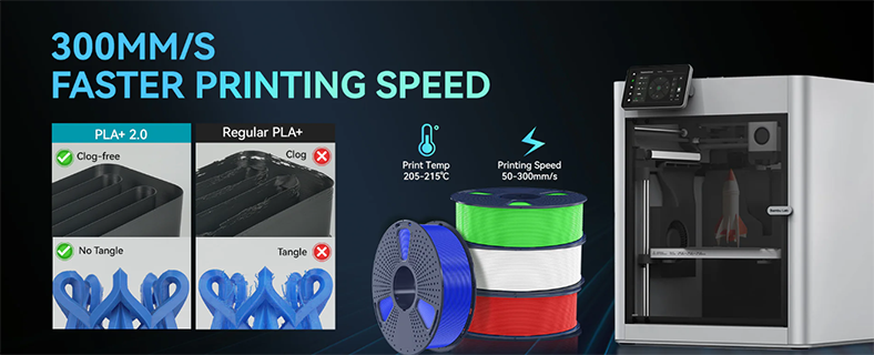 PLA+ 2.0 je filament ideální pro rychlý a spolehlivý tisk. Přináší výrazné zlepšení oproti klasickému PLA. Díky vyšší tekutosti materiálu dosahuje výborného průtoku i při vysokých rychlostech a zajišťuje stabilnější tisk.